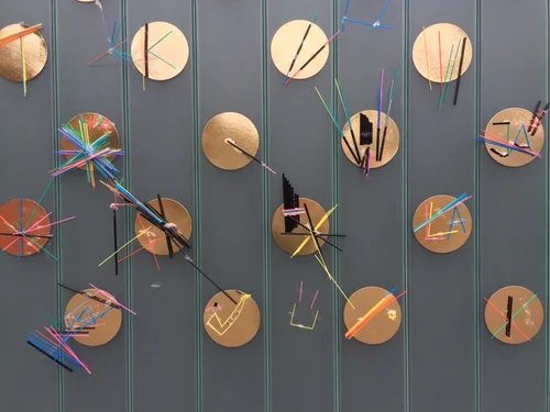Rhythm Section is a part of the vibrant Picelectronic Festival, held at the Rotondes, a festival celebrated for its dynamic atmosphere catering to "headbanging kids and grooving parents" alike. This installation transforms the simple act of creating rhythms into a playful and educational adventure. Children can choose from a variety of colored and black straws and arrange them on a golden cardboard plate, creating visual patterns that translate into rhythmic beats.
